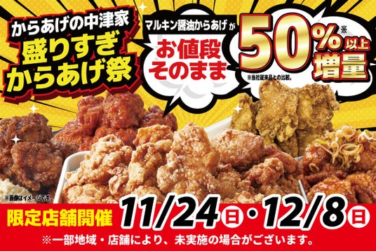 お値段そのまま!驚きの50%以上増量!!!『盛りすぎからあげ祭』を開催します!