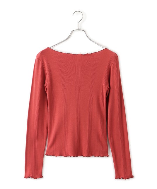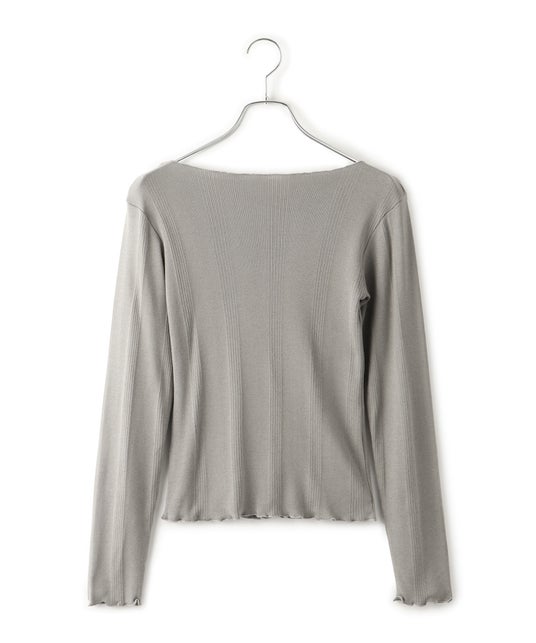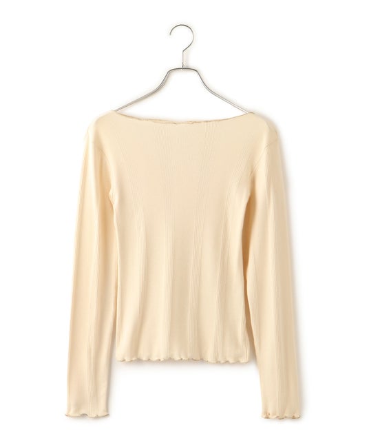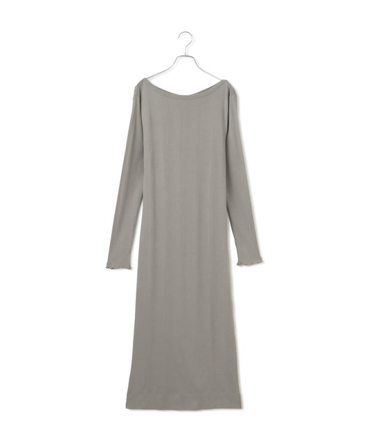 デコルテラインを綺麗に見せてくれるボートネックに、身幅をすっきりさせた女性らしい滑らかなシルエット。裾は糸をきれいに整えて華奢な表情が出るデザインにしました。