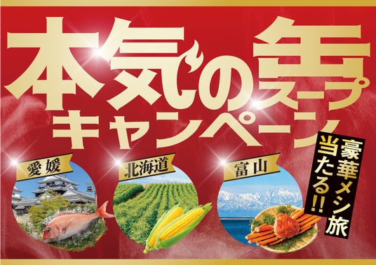 ダイドードリンコ株式会社(本社:大阪市北区、代表取締役社長:中島 孝徳)は、2024年11月29日(金)より、豪華な料理と旅が抽選で当たる「豪華メシ旅当たる!!本気の缶スープキャンペーン」を実施いたします。