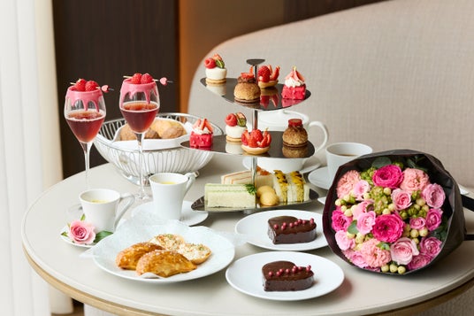 2025年2月14日(金)のバレンタインデーには、世界的に有名なフラワーデザイナー、ニコライ バーグマンの美しい花束と共に楽しめる特別な「バレンタイン アフタヌーンティー」をご用意しております。香り高く上品な甘さが広がるノンアルコール スパークリングワインで仕立てた、バレンタイン限定モクテル「AMOUR ?u RUBY -ルビーの恋-」とバレンタインを象徴するハート形のケーキ「チョコレートハート」と合わせてお愉しみください。