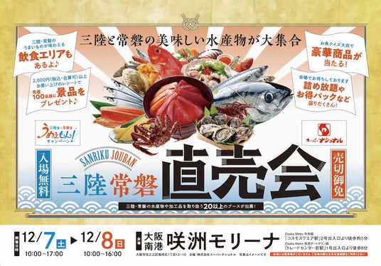 東北の水産復興を支援するため、12月7日・8日に大阪南港で三陸・常磐エリアの特産品直売イベントを開催します!