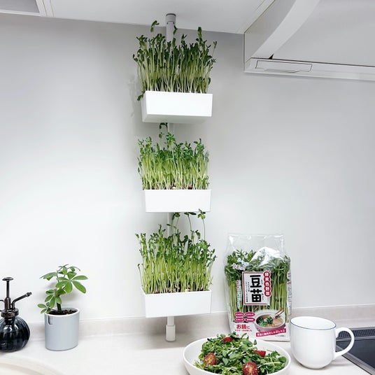 そんな豆苗の再生栽培にぴったりなのが、平安伸銅工業の縦つっぱり収納「tatecco(タテッコ)」。アクセサリー商品「縦突っ張り棒用ボックス」に、なんと村上農園の豆苗がシンデレラフィット! 「tatecco(タテッコ)」を使った豆苗再生栽培を紹介すると、「豆苗×突っ張り棒」という意外な組み合わせや、縦に並んだ豆苗のビジュアルが「かわいい!」と評判を呼び、各種メディアで取り上げられました。