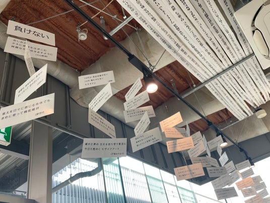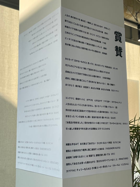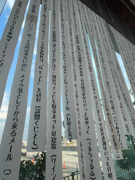 神戸港目前都市型ワイン醸造所「f winery[エフワイナリー]」のスタンドエリアに短歌約1,200首を展示しています。