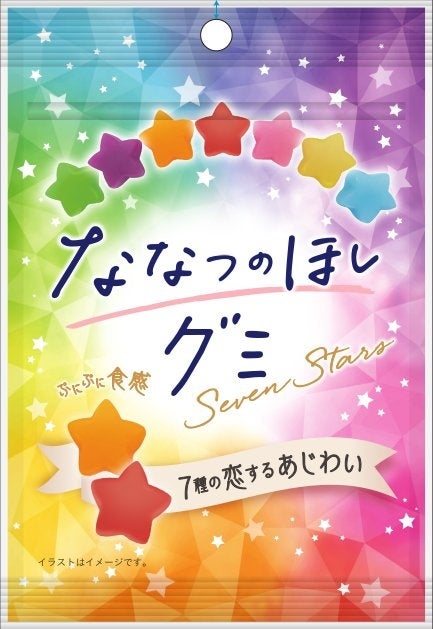 商品特徴:人気の「ななつのほしグミ」が再登場です。ななつの色と味わいが楽しめる、かわいらしいぷにぷに食感の星形グミです。