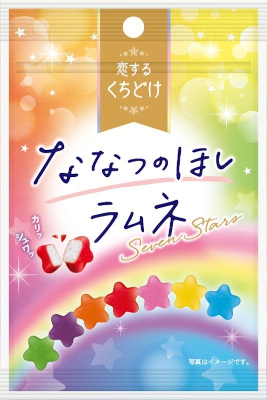 商品特徴:人気の「ななつのほしラムネ」が再登場です。ななつの色と味わいが楽しめる、カリッと食感の星形のラムネです。