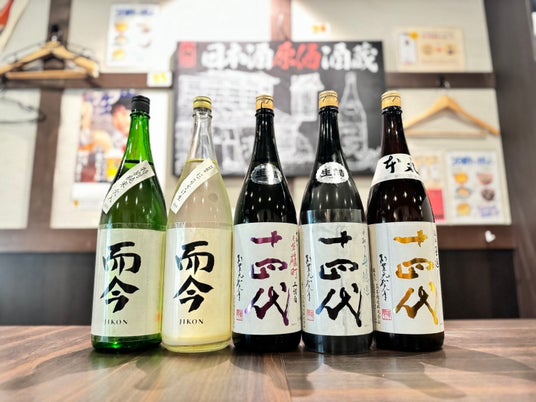 ラインナップには、幻の日本酒『十四代』を贅沢に3種、そして『而今』の中でも大人気の『にごり酒』を含む2種の計5種をご用意。