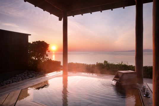 「つるや吉祥亭」庭園露天風呂付き客室「伽羅」から眺める日の出
