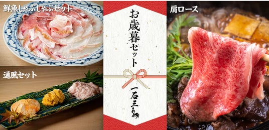 ほか「冬の味覚3点の豪華しゃぶしゃぶ盛り(1万3000円)」、「一石三鳥痛風セット(1万8000円)」、「甲羅盛りセット(通常価格8000円、Makuake価格7000円)、「ボイル蟹セット(ボイルタラバガニ1肩、ボイル毛蟹1杯、一石三鳥Tシャツ[グレー])(通常価格2万9000円、Makuake価格2万7000円)」、「オススメ海鮮セット(天然本マグロ柵 200g、国産いくら醤油漬け 100g、自家製からすみ 1腹、一石三鳥Tシャツ[グレー](通常価格2万5500円、Makuake価格2万500円))」などもご用意いたしました。