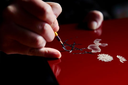 伝統工芸士による貝蒔絵。