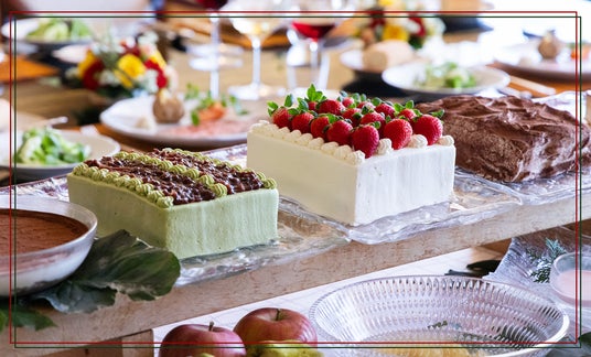 お祝いの席にふさわしいホールケーキをご準備します。メッセージを添えることも可能で、結婚記念日や誕生日、還暦のお祝いなど、ゲストの笑顔を引き出すサプライズ演出に最適です。