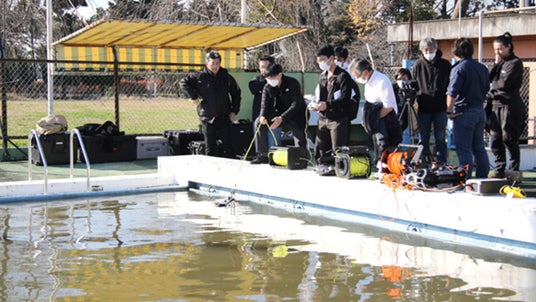 産業用途で利用可能なスペックを持ちあわせた最新水中ドローンを、利用環境を再現した水中ドローン専用コースで実際に操縦していただきます。現場ごとに適した機体の紹介のほか、「調査報告書」を前提とした運用の仕方などのご相談も受け付けておりますので、皆さまのご参加をお待ちしております。