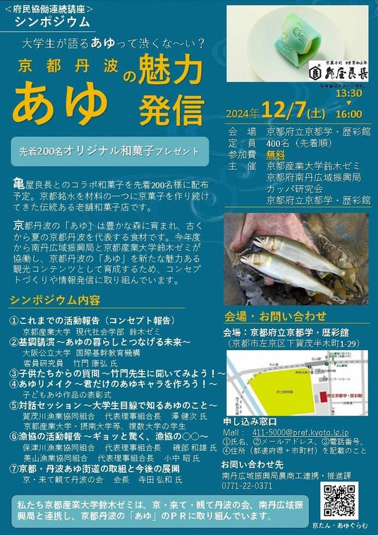 ■若い世代に「あゆ」の魅力を伝えるため、12月7日に大学生の企画・運営で「京都丹波 あゆの魅力発信シンポジウム」を開催します。