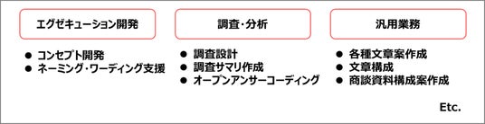 「KIRIN BuddyAI for Marketing」には、キリングループのマーケティング業務に特化した「エグゼキューション開発」「調査・分析」「汎用業務」の3つのカテゴリーに分類された約15種類のプロンプトテンプレートが用意されています。マーケティング業務の担当者は自身の業務に最適なテンプレートを選ぶことで、生成AIを効率的に活用し、迅速かつ質の高いアウトプットを得ることが可能です。また、カテゴライズされたテンプレートを用意することで、生成AIの使用に慣れていない従業員でも、簡単に操作できる点も大きな利点です。
