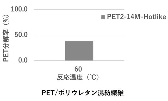 1)混紡繊維中のPETも分解できることを確認、PETとコットンの混紡繊維中のPET分解率が世界最高値の90%