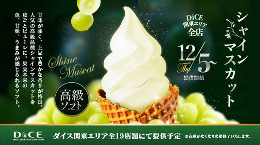 当社のグループ会社、株式会社ディスクシティエンタテインメント(本社:神奈川県横浜市、代表取締役:三田大明)が運営するインターネットカフェDiCE(ダイス)は2024年12月5日(木)~12月11日(水)の期間において関東エリア全店舗でシャインマスカット味のソフトクリームの食べ放題を同時提供いたします。