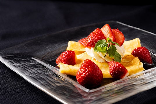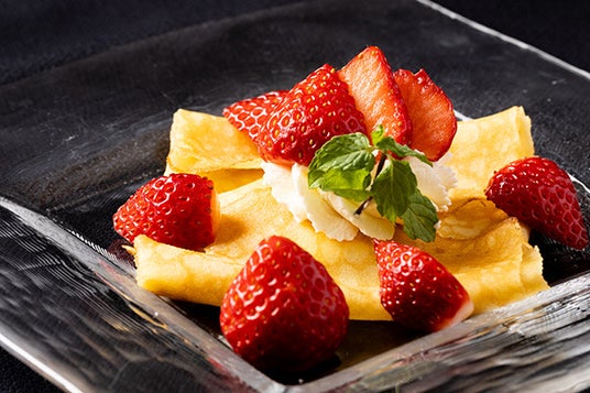 その後、クリームやクレープと一緒にお召し上がりください。瑞々しいいちごとなめらかなクレープが相性抜群!