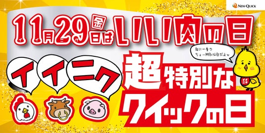 全国に94店舗を展開する老舗肉屋ニュー・クイック(株式会社ニュー・クイック、本社:東京都中央区日本橋、代表取締役:林 浩二)は、年に一度の11月29日「いい肉の日」を記念し2024年11月29日(金)にニュー・クイック全店舗で特別キャンペーンを開催します。