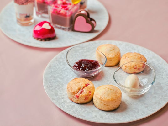 ティータイムに欠かせないスコーンは、プレーンとストロベリーホワイトチョコレートの2種類をご用意いたします。バニラの繊細な香りが魅力のホワイトチョコレートとドライ苺を使用し、味わい深いスコーンに仕上げました。ストロベリージャムやクロテッドクリームを付けてお楽しみください。