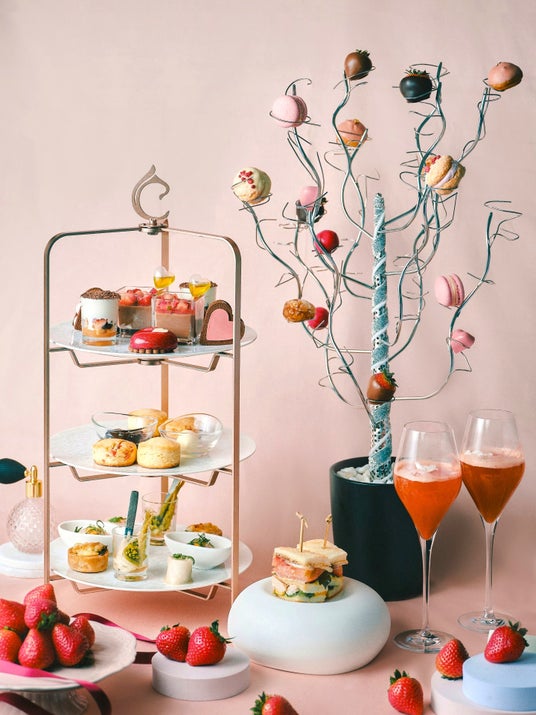 “ツリーから取って食べる”、そんなユニークな演出が自慢のツリー型スタンドにも、苺スイーツが飾られ華やかに登場します。国産のフレッシュ苺をダークチョコレートとミルクチョコレートにディップした2種類の「ショコラストロベリー」や、ベビーピンクが可愛らしい「ストロベリーマカロン」、エアリーなスポンジケーキをホワイトチョコレートでコーティングし、ドライ苺を飾り付けた「ストロベリーブッセ」、ビビットピンクが目を引くキュートな「ストロベリーチーズケーキボール」など、見た目にも味にもこだわったパティシエ特製のスイーツをご賞味ください。