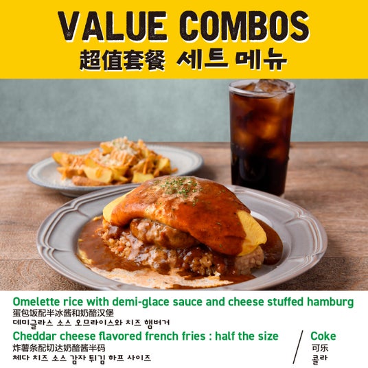 老若男女に愛され、いまや国民食となったオムライスは日本人だけでなく多くの外国人を魅了しています。当店では、そんなオムライスの魅力をさらに世界に広めるため、『インバウンド専用セットメニュー』をご用意しております!