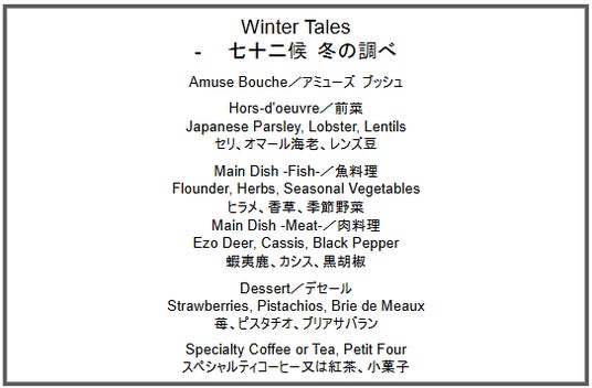 ≪概要≫ ディナープログラム『Winter Tales - 七十二候 冬の調べ』
