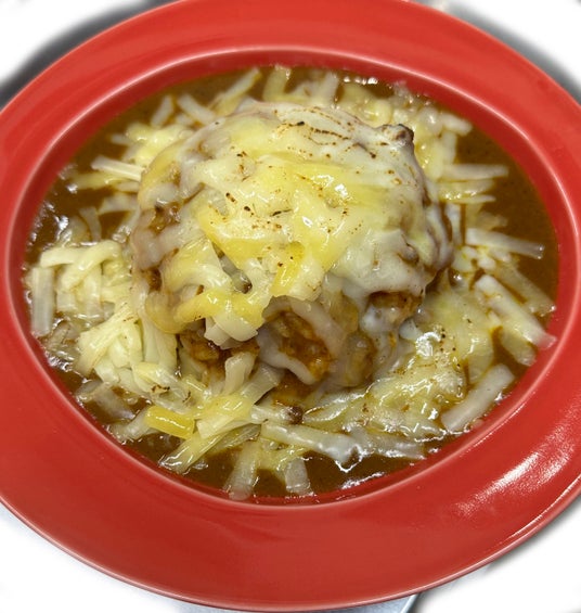 辛口が苦手な方向けに辛さを抑えた甘辛カレー(やや辛口であり甘口ではありません)や、3種のチーズをトッピングしたチーズカレーの他、うどん屋さんのカレーうどんを模した「カレー屋の本場讃岐うどんカレー」などもご用意しています。今のところは大人しめな無難なメニューですが、オープンしてひと段落ついたら「ありそうでなかったカレーのアイデア」をばあちゃん達が形にしていきます。