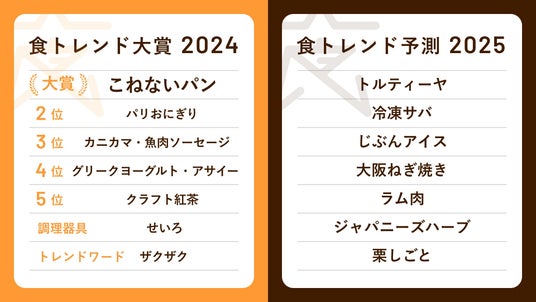 ・クックパッドは第8回となる「食トレンド大賞2024」と「食トレンド予測2025」を2024年11月26日(火)に発表した