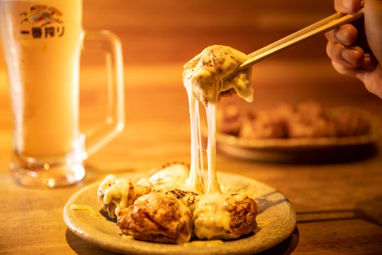 名物のたこ焼きは、こだわり抜いた出汁を使用しており、何もつけずにそのままでも美味しく味わえる一品に仕上げています。柚子胡椒や塩ゴマ油といった風味豊かな調味料とも相性が良く、ビールではなく日本酒とのペアリングで最高の味覚体験をお楽しみいただけます。