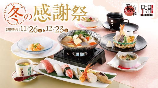 株式会社フーズネット(本社・大阪府大阪市、代表取締役社長・加藤誠)が運営する「活?廻転寿司にぎり長次郎」 「廻転寿司CHOJIRO京都」は、11月26日(火)から12月23日(月)まで、冬メニュー第1弾を「冬華粧(ふゆげしょう)」と題して販売いたします。期間中「冬の感謝祭」を同時開催いたします。この季節ならではの味わいを、心ゆくまでお楽しみください。