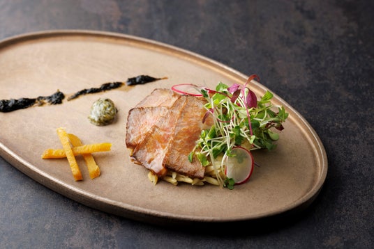 三重県産 「松阪牛」 モモ肉のローストビーフ、きんこ芋、リゾーニ