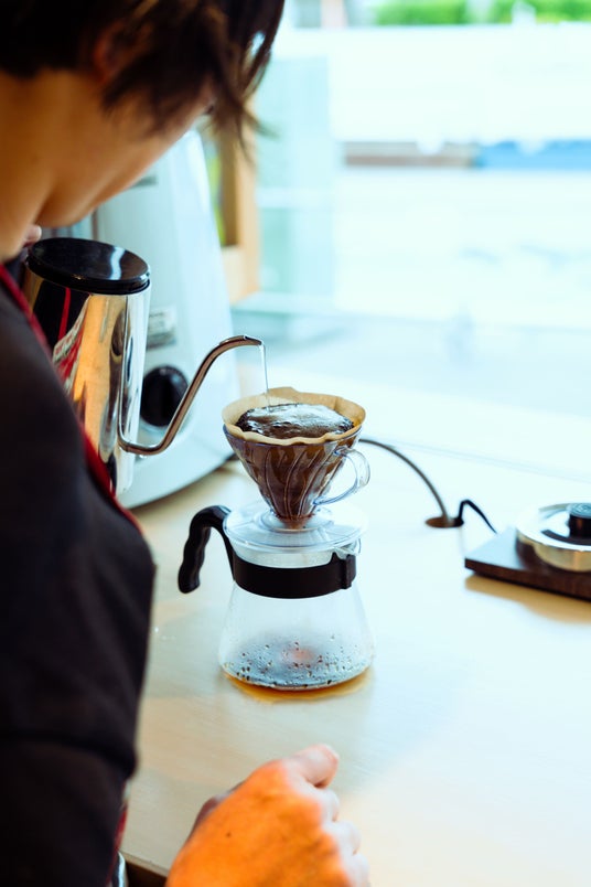 「カウンターで直接テイクアウトできるコーヒースタンドとしてもご利用いただけます。」ドリップはもちろん、レバー式エスプレッソマシンで淹れるナポリ風一杯もお楽しみに。