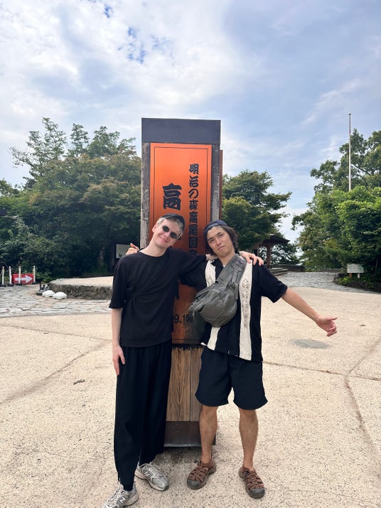 ヴィーガンの友人と高尾山山頂にて。ヴィーガン対応の食事がなく、大変困りました。