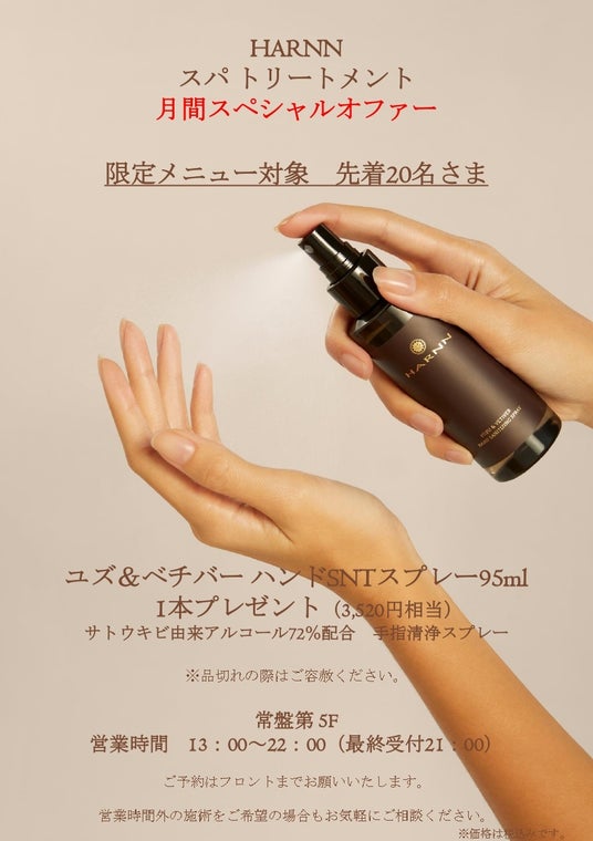 「ハンドSNT スプレー」もしくは「マッサージ 10 分」プレゼント