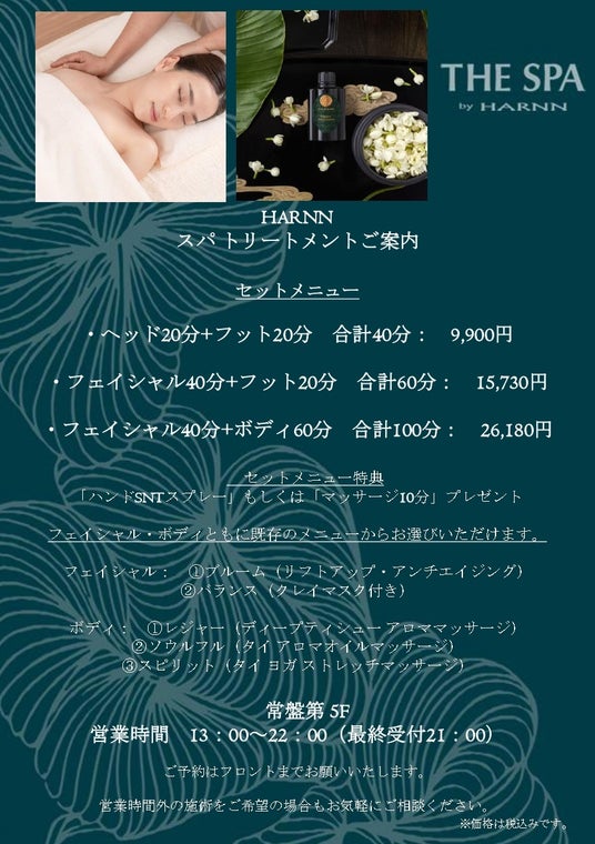 当館では6月1日よりタイ発祥の人気ライフスタイルスパ「THE SPA by HARNN」がオープンしております。
