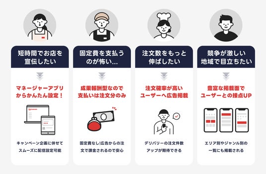 自由で使いやすい本機能を1店舗でも多くのお店で活用いただき、デリバリーを通じた飲食店のさらなる発展に貢献してまいります。
