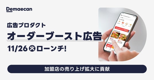 株式会社出前館は、運営する日本最大級のデリバリーサービス「出前館」において、加盟店向けの新たな広告プロダクト「オーダーブースト広告」を、2024年11月26日(火)より提供開始いたします。