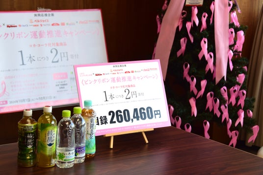 みちのくコカ・コーラボトリング株式会社(本社: 岩手県盛岡市、代表取締役社長: 谷村 広和、以下「当社」)は、株式会社ベルジョイス(本社: 岩手県盛岡市、代表取締役社長: 澤田 司)との共同企画「ピンクリボン運動推進キャンペーン」を実施し、11月25日(月)にいわてピンクリボンの会(事務局: 岩手県紫波郡、会長: 太田 睦子)へ寄付金の目録を贈呈いたしました。