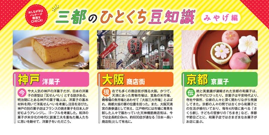 弁当には、るるぶ監修の「三都のひとくち豆知識」が同封されています。観光スポットやグルメ、お土産などの情報が添えられ、京阪神の魅力をさらに深く知ることができます。