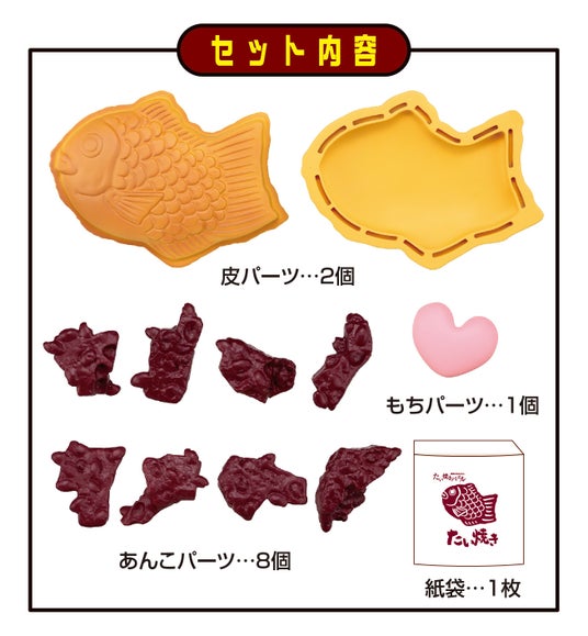 セット内容:皮パーツ・・・2個、あんこパーツ…8個、もちパーツ…2個、紙袋…1枚