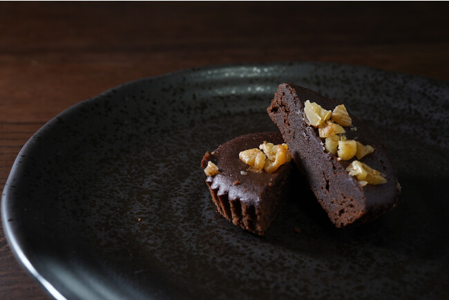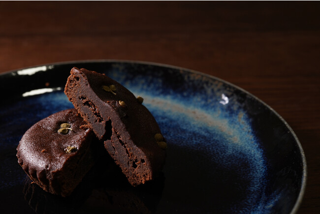 実山椒とチョコレート。 異次元な取り合わせのように思うけれど不思議に相性がいい取り合わせ。ガトーショコラのようなくちどけなのに、実山椒の鮮烈さがぴりりと洗い流してくれるお酒にも合うお菓子です。