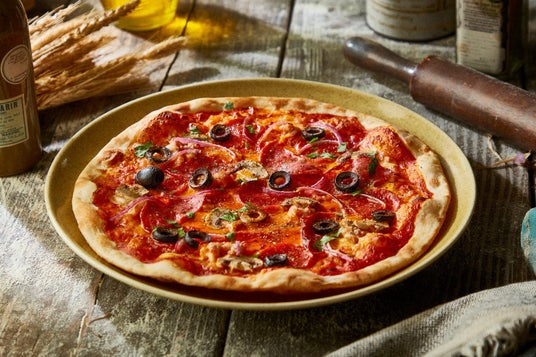 豚ひき肉やサラミ、ペパロニをふんだんにのせて焼き上げたミートミックスピザ。