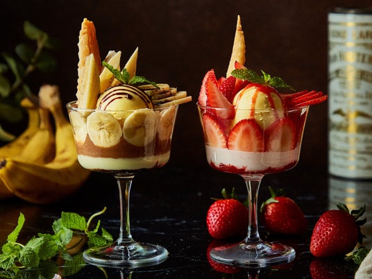 チョコとバナナのミルフィーユパフェ、苺のミルフィーユパフェ