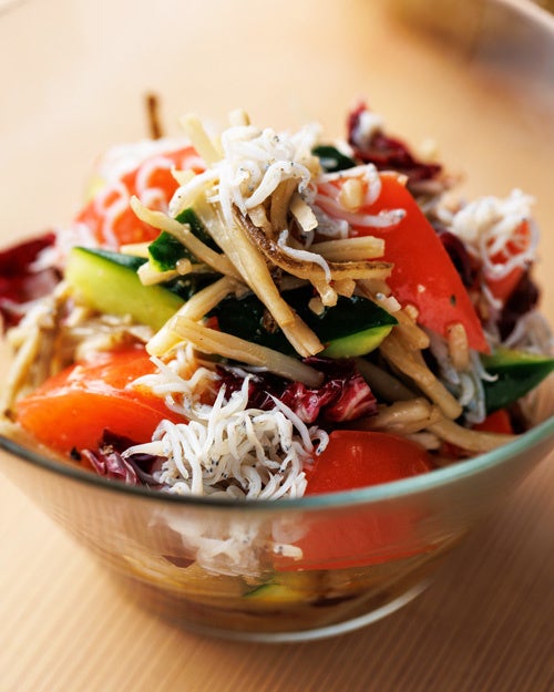 しらすとごぼうのアヒージョ風マリネサラダ~むすぶサラダ料理~