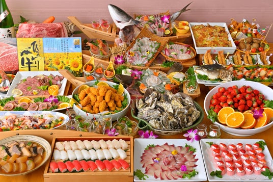 冬の味覚「牡蠣」や「寒ヒラメ」、地元の食材や瀬戸内海の海の幸として「ひまわり牛」、「ハマチ」などの冬の香川をグルメにお楽しみいただけるメニューが満載です。人気のお刺身コーナーでは、瀬戸内産「寒ヒラメの薄造り」、「県魚ハマチのお造り」や「真鯛のお造り」など、新鮮なお魚が楽しめます。ライブキッチでは揚げたてのカキフライや海鮮握り鮨、地元白方漁港直送の「蒸し牡蠣」も登場します。