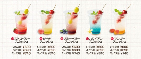 シュワっと爽快なスカッシュにフルーツ飴をドボン!フルーツ飴の甘さとシュワシュワはじける炭酸がたまらない一品です。
