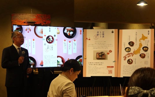 など和風調味料を販売する株式会社 久原本家は11月21日(木)~24日(日)の4日間、東京ミッドタウンにある直営の飲食店『茅乃舎だしおでん』を会場に、全国各地のお雑煮5種を一度に味わえるイベント「お雑煮という奇跡」お雑煮たべくらべ会を開催しました。