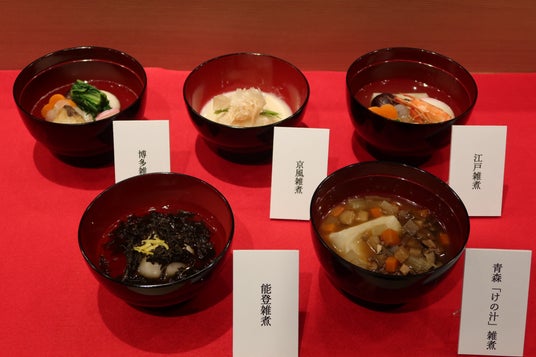 (青森「けの汁」雑煮、能登雑煮、江戸雑煮、京風雑煮、博多雑煮)