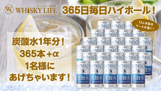 皆様に美味しいハイボールを楽しんでいただきたいと考え「PRO 炭酸水 190ml 1年分365本+α」をプレゼントいたします。お届けは毎月定期的に行いますので、「365日ハイボール」をお楽しみいただけます。