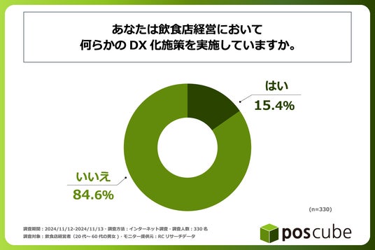飲食店経営者が飲食店経営においてDX化施策を実施している割合は約15%