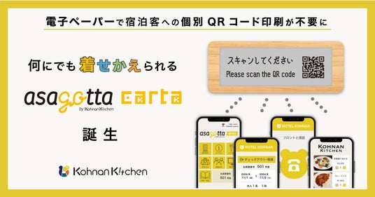 ホテル客室テレビを利用したインフォメーションシステム「asagotta」を開発する合同会社甲南キッチン(兵庫県神戸市、代表社員:砂田祥平)は、新たに電子ペーパーを利用したホテル向けソリューション、asagotta carta(アサゴッタ・カルタ)を開発しました。